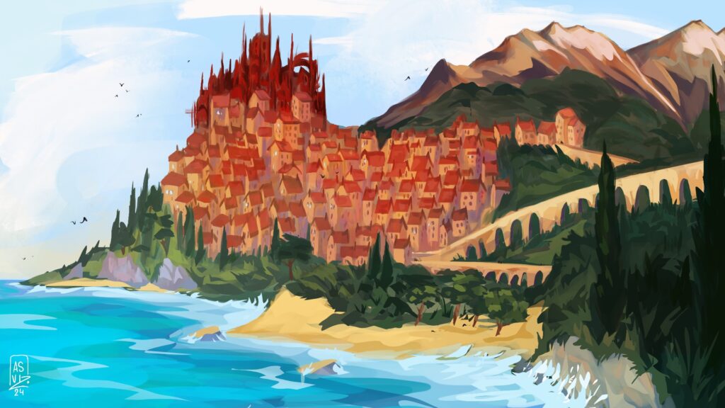 I began the creation of this concept artbook when I was studying Illustration and Concept Art at ESMA, Montpellier. It’s been few years now that I’m working on it on my free time, using it to developp my skills in environment, maps, and narrative design.
